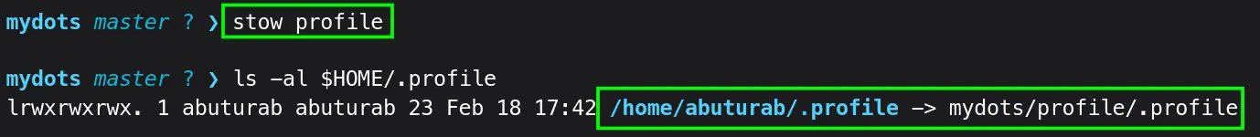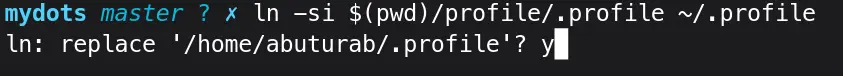 ln -scommand by-default only accepts absolute paths$HOME/Documents/git/mydots/profile/.profileinstead of relative pathsprofile/.profileexcept when using-rflag. - If you have a lot of dotfiles, it might become cumbersome to manage them via