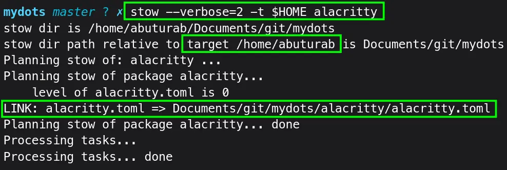 stow --verbose=2 alacritty