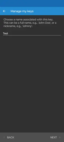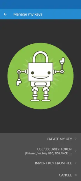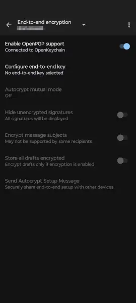 Configure end-to-end key. It will show all the keys saved in theOpenKeychainapp.