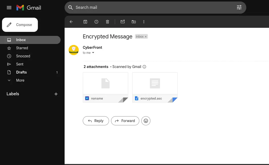 This is how Gmail/Outlook web versions will look like for E2EE email. The body of the email isn’t visible at all on the PC version of Gmail.