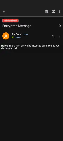 While on the Thunderbird app encrypted message will look like this (after decryption of-course):