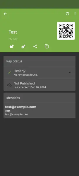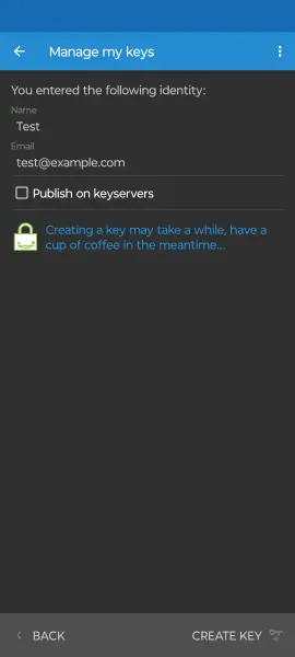 Now share your public key to world by clicking on the key stored in your OpenKeychain app. You can simply copy the app by clicking the copy icon or share it via share icon.